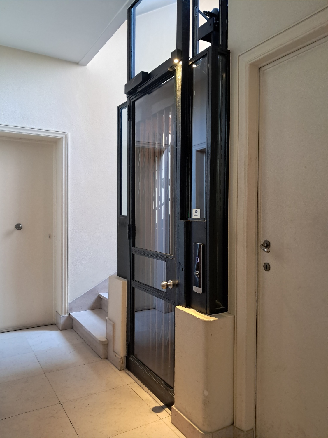 L'ascenseur de l'aile gauche a été partiellement modernisé en 2022 et les boutons d'appelBouton situé à côté de chaque porte palière qui permet d’appeler l’ascenseur. remplacés.