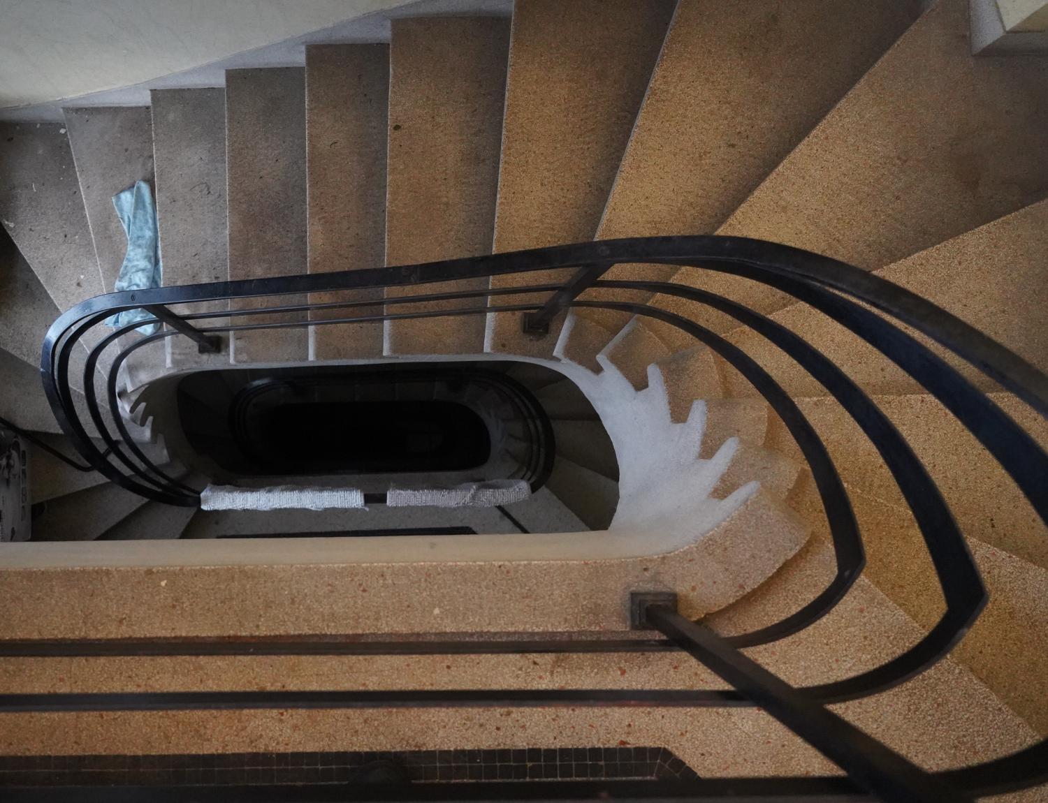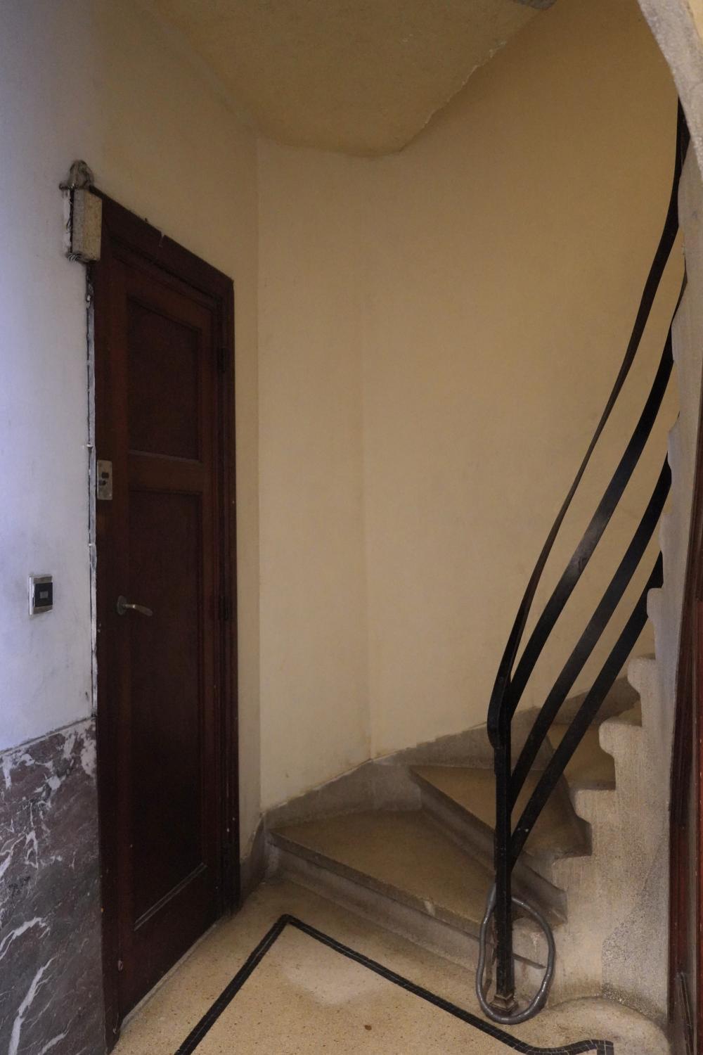 In de inkomhal is de oorspronkelijke decoratie in art-decostijl bewaard gebleven: marmeren traptreden en dekstenen, vloer in lichtgekleurd granito met boorden van zwarte mozaïek. De deuren van de appartementen en van de lift zijn gemaakt van donker hout met horizontale verdelingen. De in de rechterzijgevel ingerichte inkomhal vormt over de hele lengte een boog naar rechts en bevat de Schindlerlift, die circuleert in een gesloten schacht en zich net voor de onderste deel van de trap in granito bevindt.