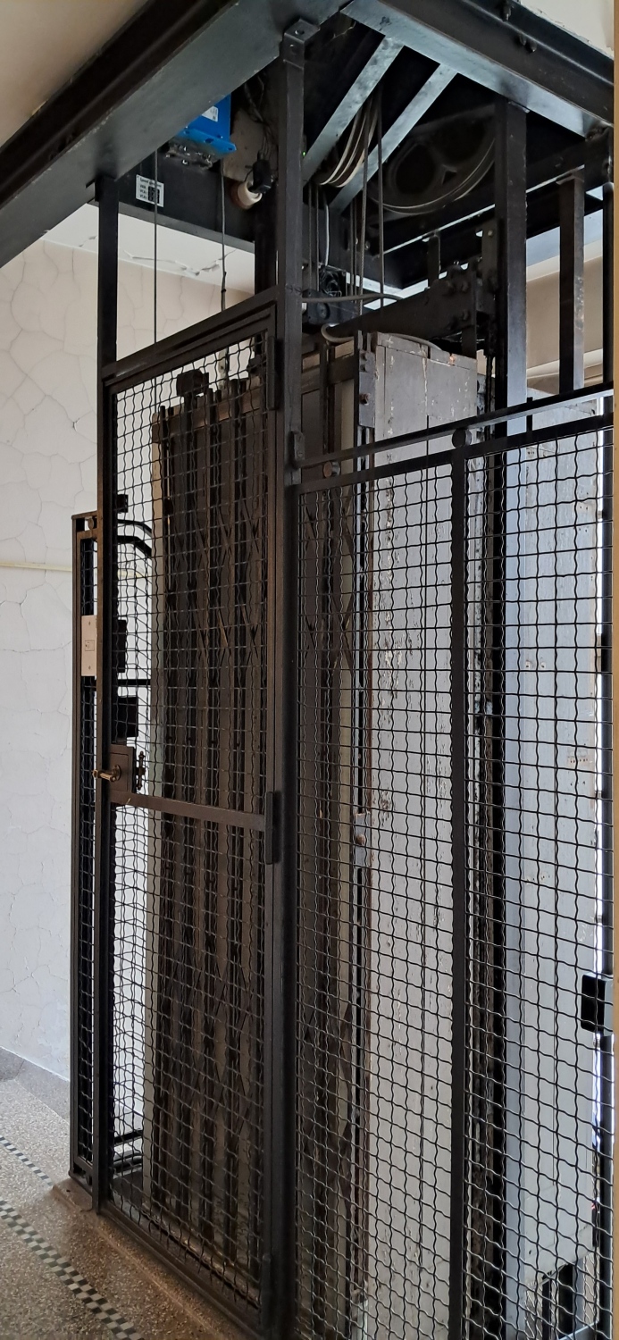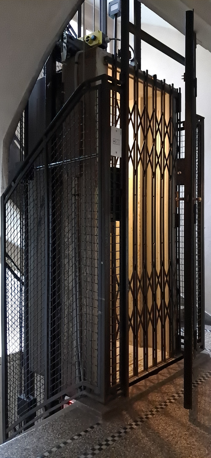 dienstlift is gedeeltelijk open en wordt beschermd door eenvoudig metalen